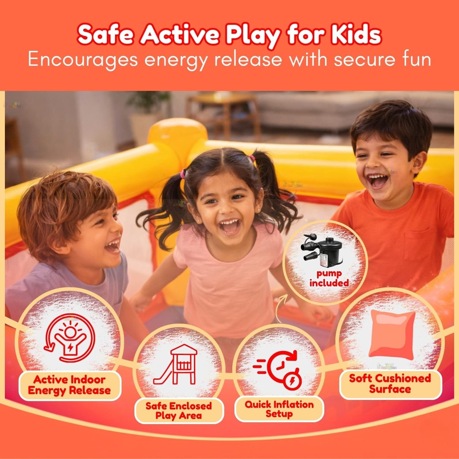 - Soft inflatable, floor and high walls provide a safer bouncing platform